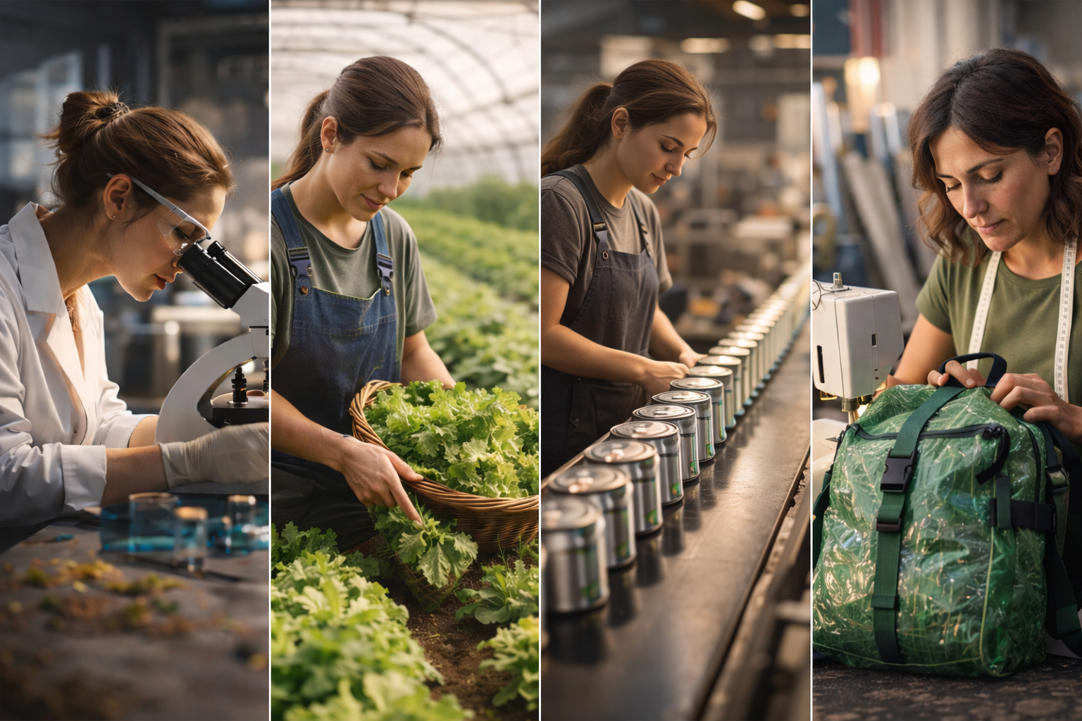 Otra línea de acción atraviesa residuos, industria textil y materiales del futuro. Emprendedoras que transforman plástico, descartes industriales y biomateriales en productos con valor agregado, articulando impacto ambiental con modelo de negocio. Aquí la sostenibilidad no es discurso: es proceso productivo, trazabilidad y empleo local. Economía circular aplicada, no declamada.